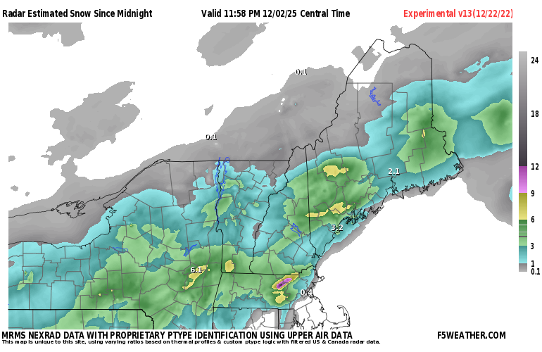 Today's Radar Estimated Snowfall Yesterday's Radar Estimated Snowfall |